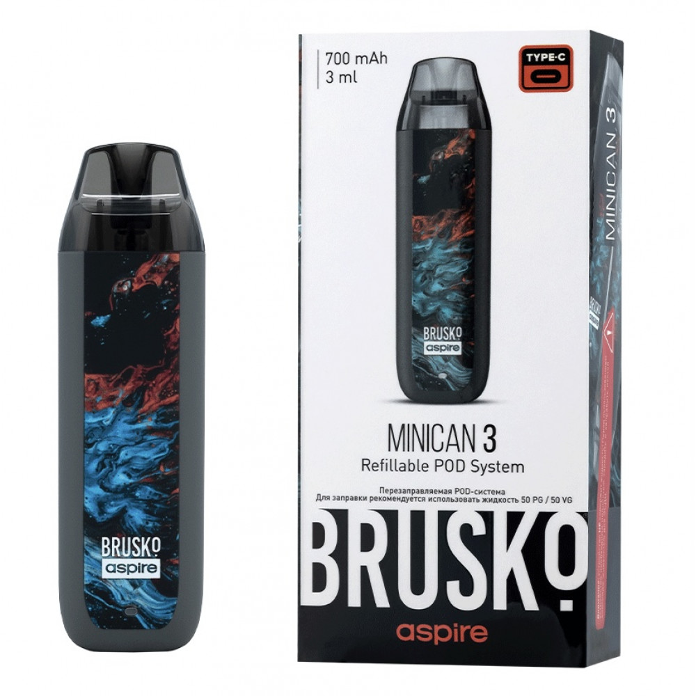 Перезаправляемая Под-Система Бруско Миникан 3 (Brusko Minican 3) 700 mah, Серый Флюид - купить в Екатеринбурге
