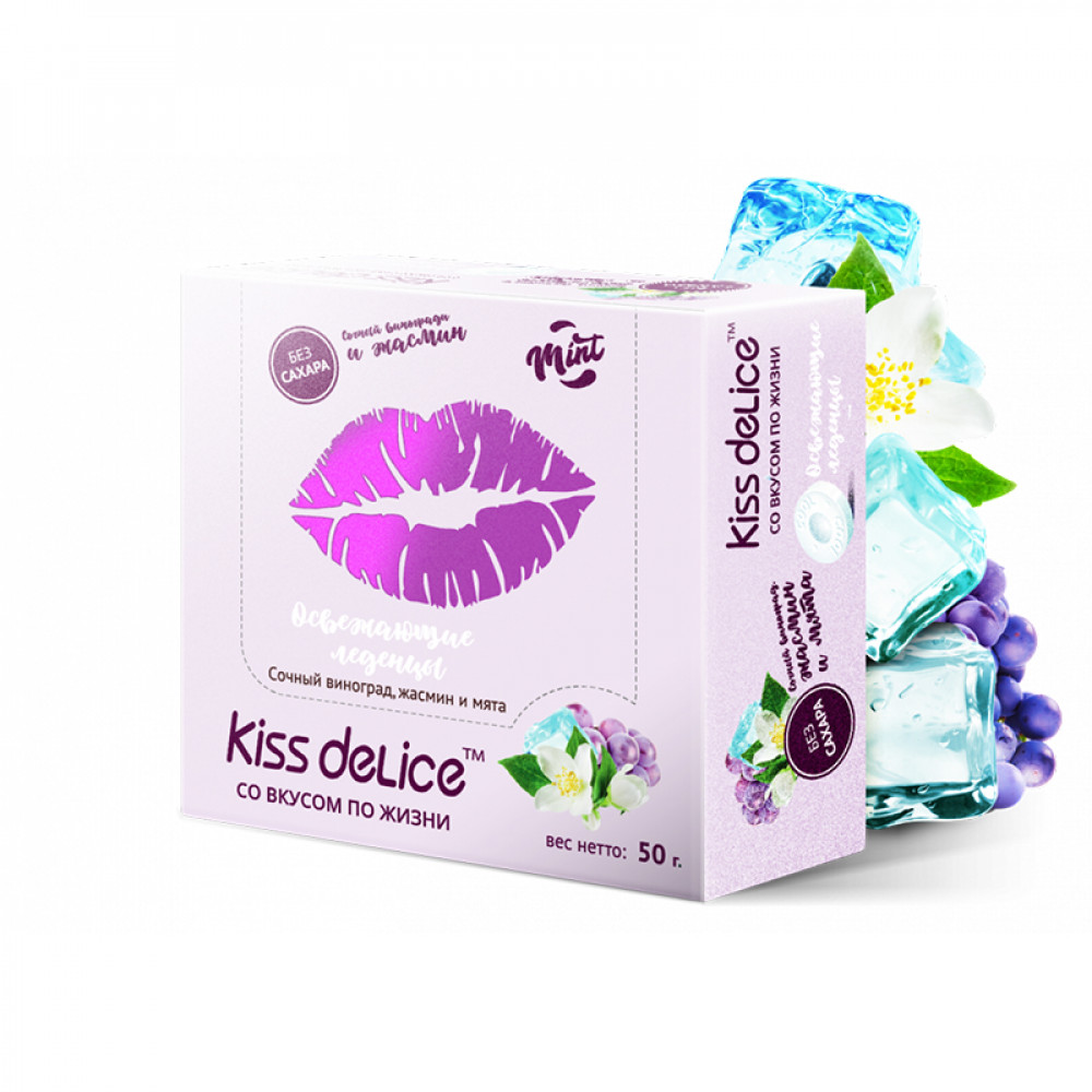 | Аромат/вкусВиноград, жасмин и мята | Без сахараДа | БрендKiss Delice |